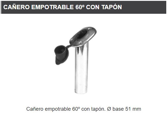 Cañero inox 316 aisi para empotrar en embarcaciones, con tapon de goma. Base de 51mm.