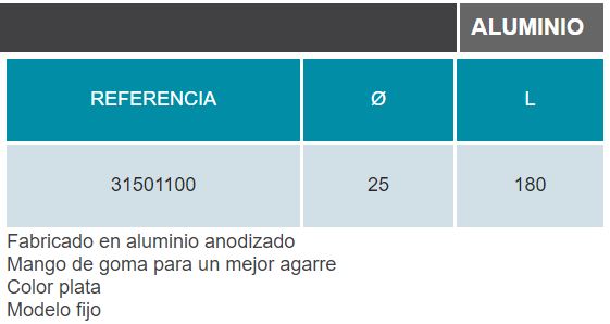 Fabricado en aluminio anodizado con Mango de goma para un mejor agarre. Color plata