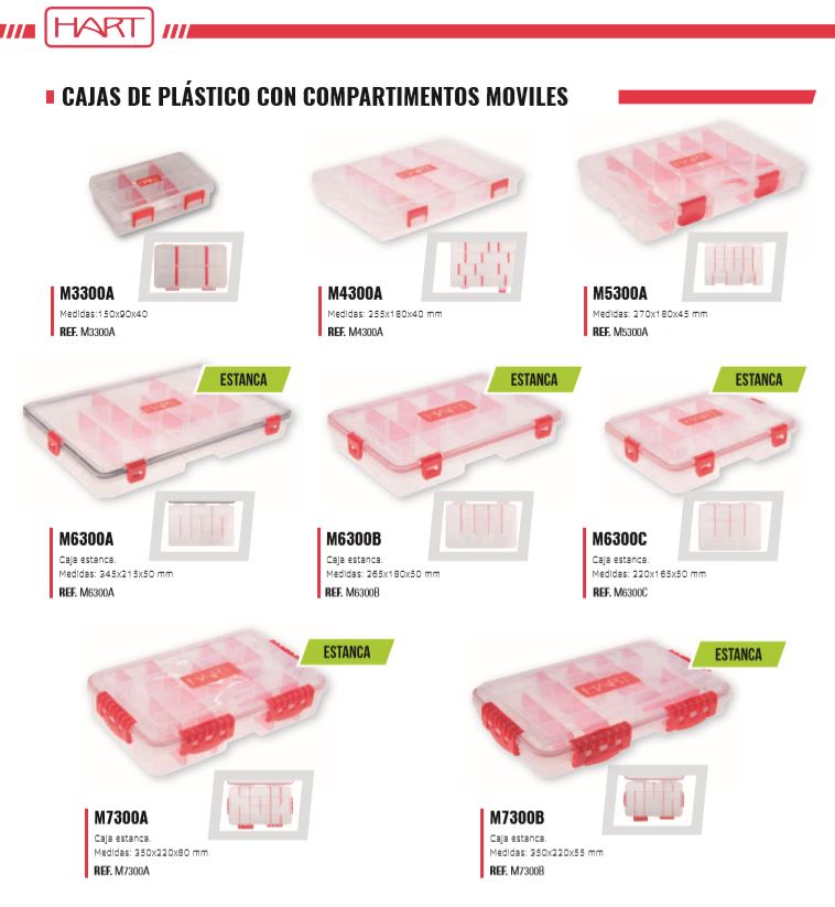 HART CAJAS DE PLÁSTICO CON COMPARTIMENTOS MOVILES