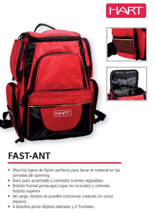 Mochila HART FAST-ANT ligera de Nylon perfecta para llevar el material de pesca como señuelos en las jornadas de spinning.
