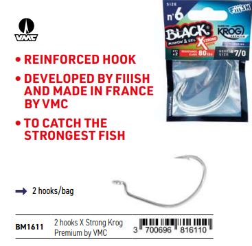 Anzuelo Black Minnow nº6 tamaño 7/0. Resistencia de 80Lb. Se utiliza para cabezas de plomo black minnow nº6. Incluye dos anzuelos.