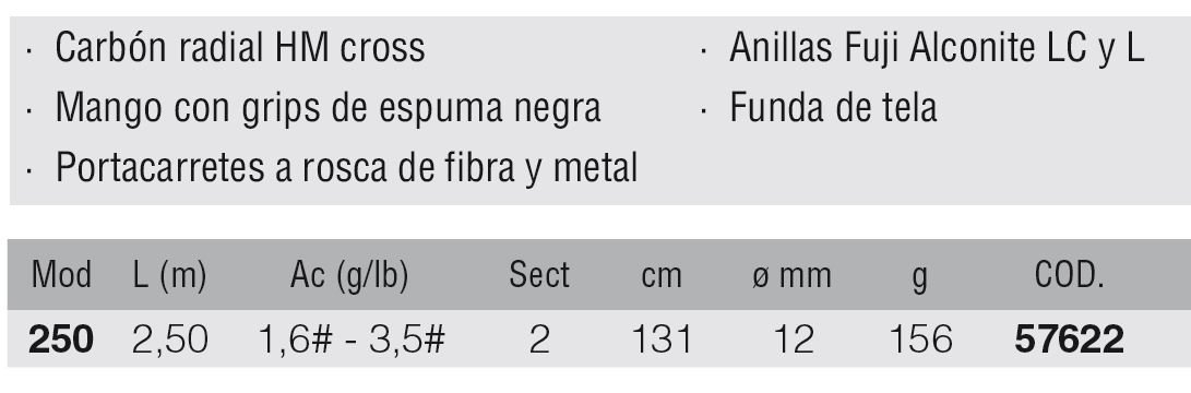 Tica Wilder 250 FUJI es muy indicada para Egging o pesca de cefalópodos. Anillas Fuji Alconite LC y L.