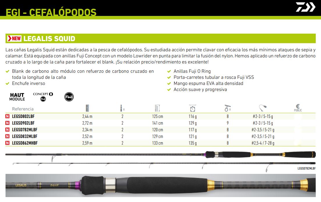 Las cañas DAIWA Legalis Squid están dedicadas a la pesca de cefalópodos. Su estudiada acción permite clavar con eficacia los más mínimos ataques de sepia y calamar.