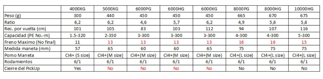 • Tamaños disponibles Del 4000 al 10000 PG – HG - XG