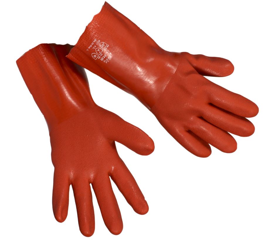 Starke und flexible Handschuhe. PVC-Beschichtungsformel für 3 Bäder, die eine gute Beständigkeit gegen Chemikalien, Öle, Öle und Fette bietet.