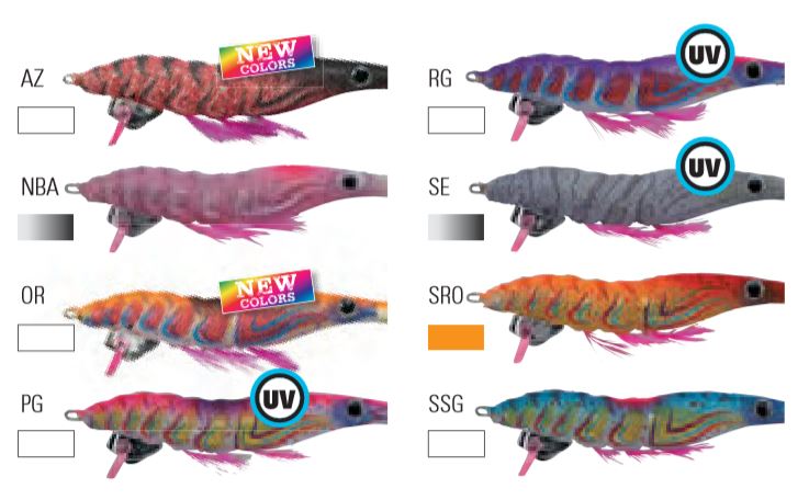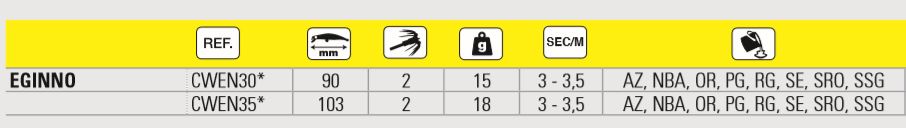 Egi innovant en forme de crevette, qui nage «vers l'arrière» grâce à la position stratégique de son œil, avec un système de bavette escamotable de type fla-pen, qui lui confère une nage particulièrement similaire à celle des crevettes et des crevettes. Hochet inférieur qui génère un son attrayant. Jupes extérieures qui imitent les pattes des crevettes.