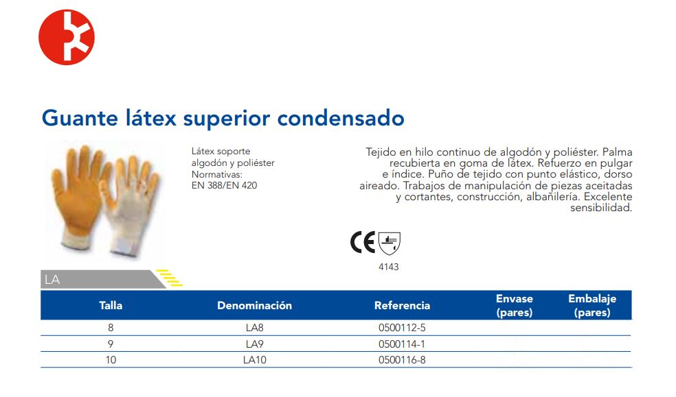 Guante Látex soporte algodón y poliéster Normativas: EN 388/EN 420