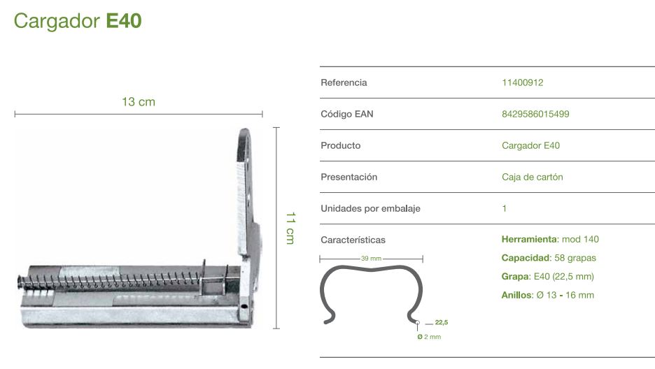 Caricatore per cucitrice modello 140 e utilizza graffe E40 e A40 con capacità di 58 graffette.