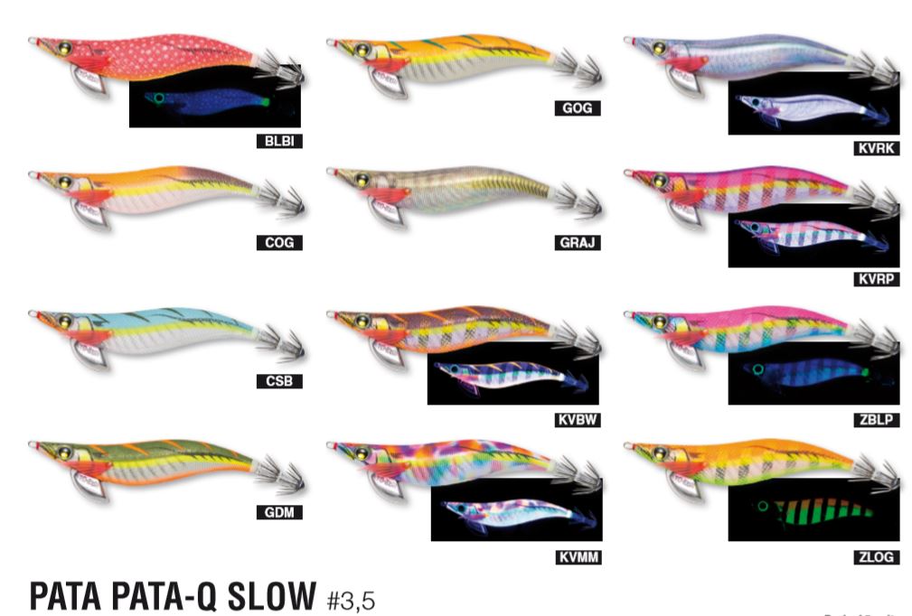 Señuelo PATA PATA Q SLOW 3.5 ideal para la pesca del calamar y la sepia. Se hunde 1 metro cada 5.5 segundos muy atrayente para estos cefalópodos. Sin lugar a dudas un señuelo que no debe de faltar en nuestra caja de pesca. Disponible en varios colores