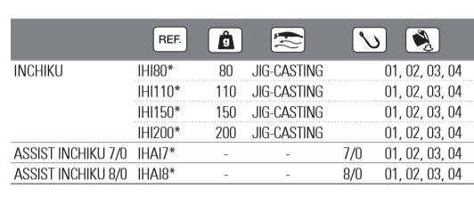 Este inchiku, o bullet jig, es como una bala provista de una excitante cola de vinilo armada con un doble Asari Assist Hook. Al descender no lo hace “a plomo” como un jig convencional, sino planeando. Su trabajo de recogida es más horizontal que vertical. Bajando, la faldilla se dobla por encima de la bala y en la subida se queda por debajo, generando una acción irresistible para los depredadores. La recuperación del señuelo ha de ser lenta y con pausas, intercalando ligeros y breves golpes de muñeca.