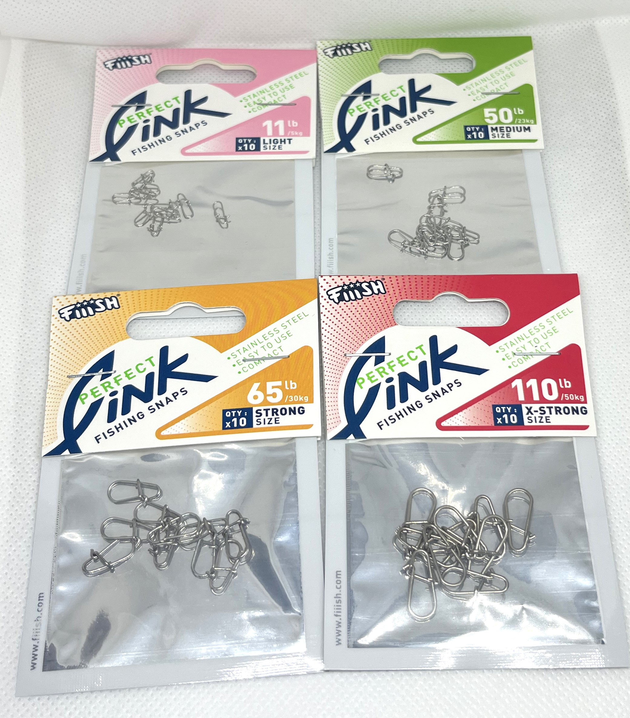 A fiiish Perfect Link é fabricado em aço inoxidável com sistema de fechamento duplo. Eles são compactos, discretos e nos proporcionarão uma melhor mobilidade de atração.