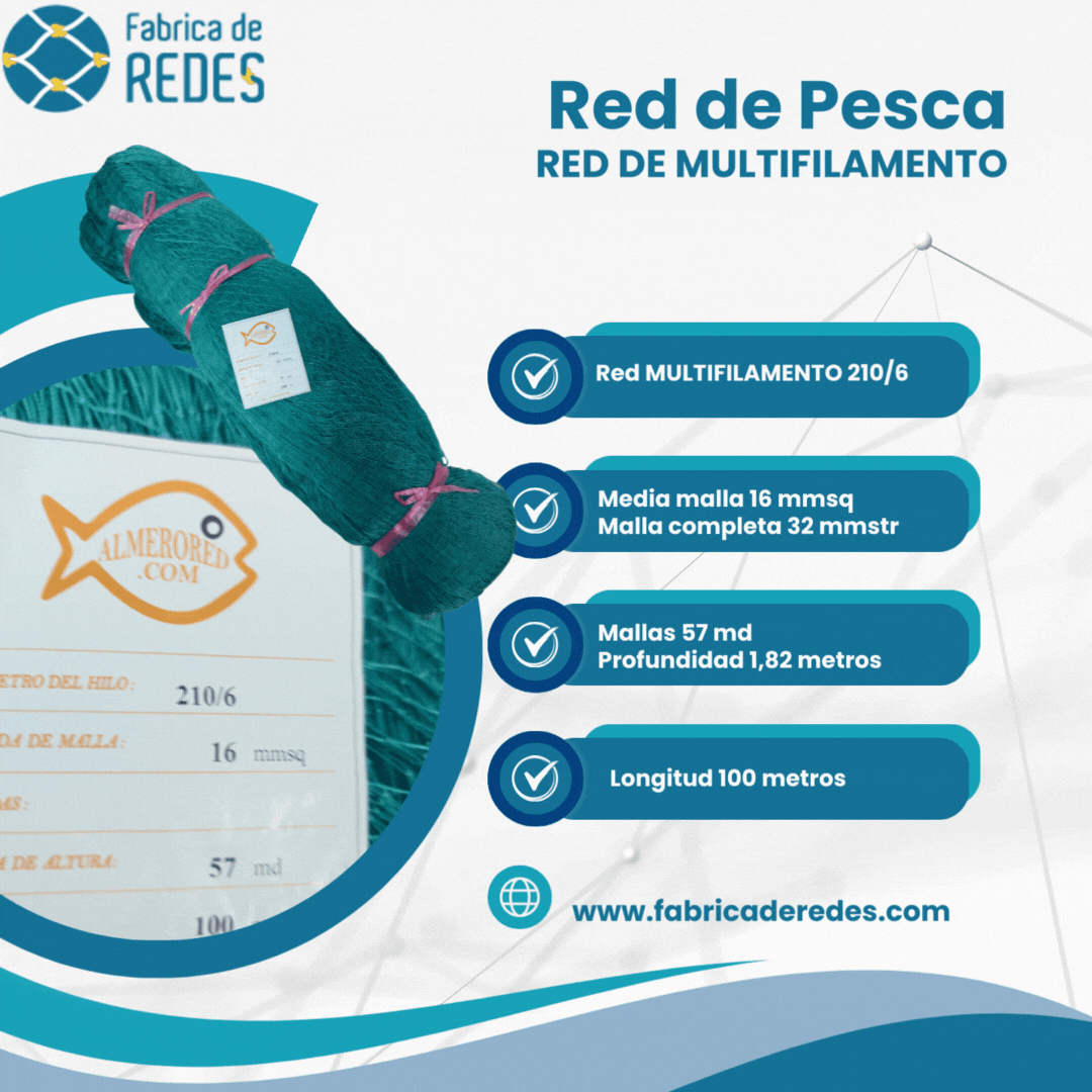 Red de nylon 210/6 x media malla 16mmsq x 57 mallas x 100 metros en color verde.